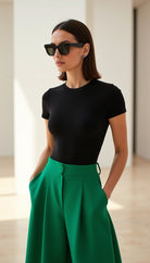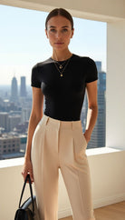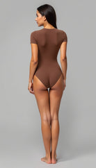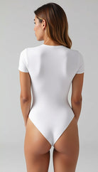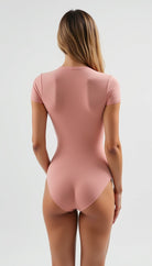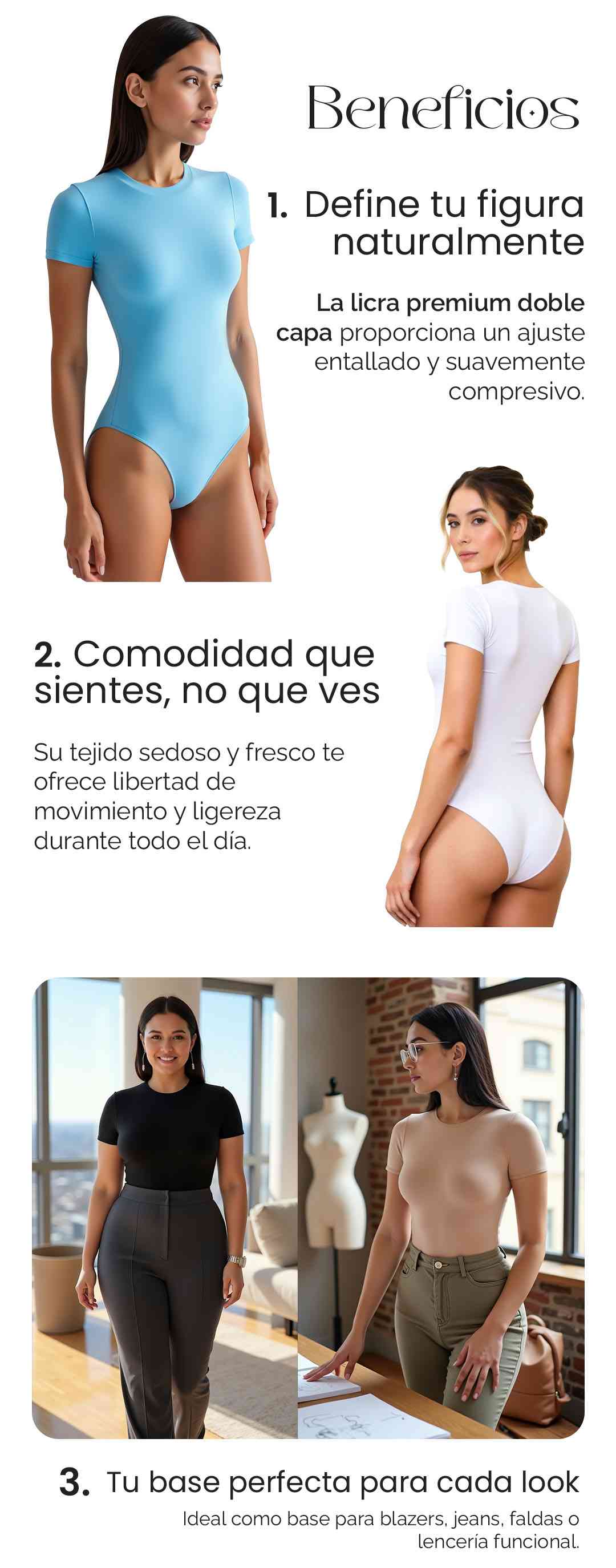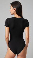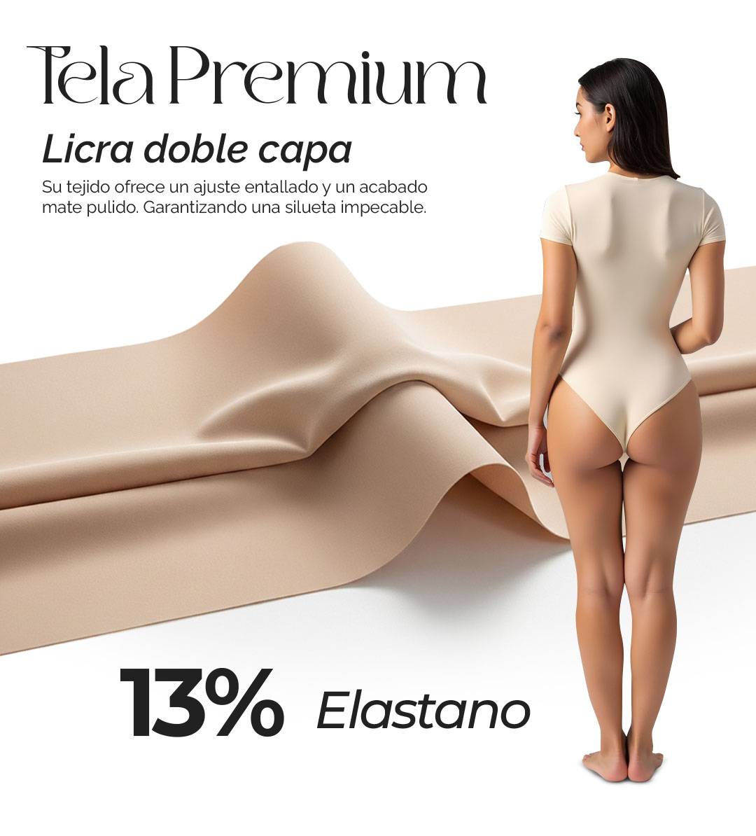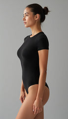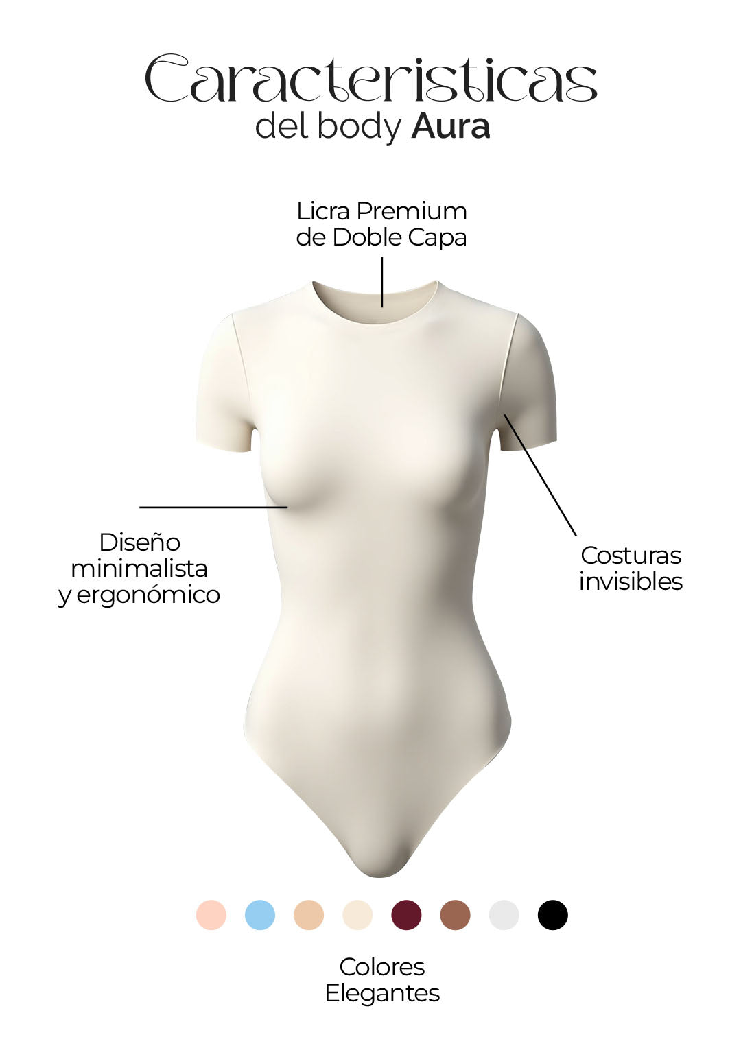 El Body Aura, confeccionado en licra premium (87% poliéster, 13% elastano) de doble capa, ofrece un ajuste entallado y un acabado mate pulido. Su diseño minimalista con cuello redondo y mangas cortas se complementa con costuras y dobladillos invisibles, garantizando una silueta impecable bajo cualquier prenda. Un cierre de broche de tres posiciones en la entrepierna añade funcionalidad discreta , haciendo de esta pieza una base esencial para looks elegantes y casuales, sin transparencias y con una sensación de segunda piel.